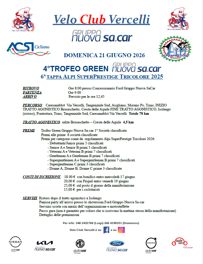6° Alpi Superprestige Tricolore - Vercelli 21 Giugno 2026