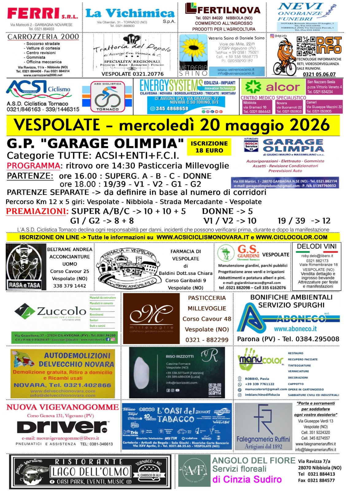 - Iscrizione: Euro 18 1° PARTENZA: ORE 16:00 SUPER GENTLEMAN A/B/C, DONNE 2° PARTENZA: ORE 13:40 DEBUTTANTI - JUNIOR – SENIOR A/B - GENTLEMAN A/B