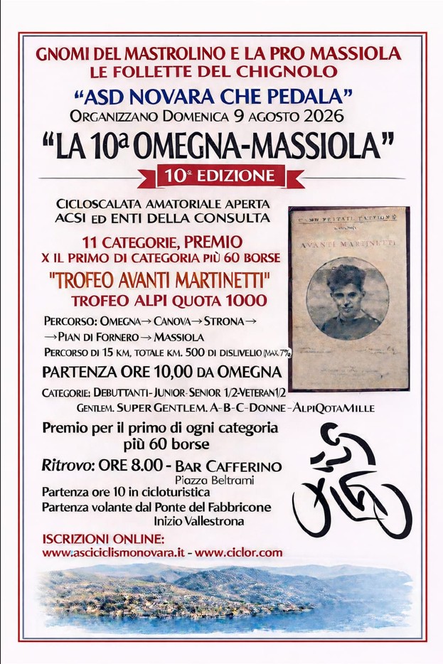 - Orari: Ritrovo ore 8:00 in Piazza Beltrami --presso il Bar "Il Cafferino" Omegna Partenza ore 10:00